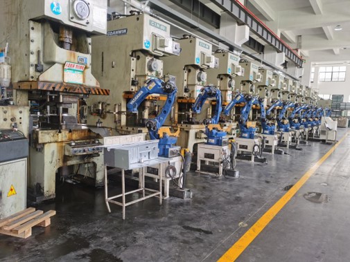 公司擁有大、中、小型沖壓及焊接機械設備近100余臺套,其中630T-1200T大臺面架框液壓機(移動工作框臺面)5臺,氣動100T-250T沖床20余臺,63T壓力沖床10臺,25T-40T壓力沖床20余臺,315T液壓機4臺,300T液壓機4臺,日本松下350-500電焊機20臺,電焊機、二氧化碳氣體保護焊機、氬弧焊機合計10臺,大小自動手動剪板機5臺,維護設備車床、銑床、刨床、磨床、搖臂轉床等11臺,引進進口機械手臂,實現全自動線生產,引進空調面板全自動生產線和噴涂生產線可供大中型企業鈑金制品零部件配套產品的加工。